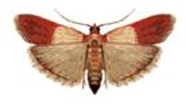 別名印度谷螟。翅展約18mm,復(fù)眼黑色,前翅狹長(zhǎng),呈三角形,翅面近基部約2/5為黃白色,近端部約3/5為紅棕色,并有銅色光澤。后翅灰白,略帶黃褐,半透明。卵橢圓形,乳白色,表面粗糙。成熟幼蟲(chóng)長(zhǎng)約12mm,淡黃白色,頭部赤褐色。蛹體長(zhǎng)約6mm,細(xì)長(zhǎng)形,桔黃色,尾端有尾鉤8個(gè)。